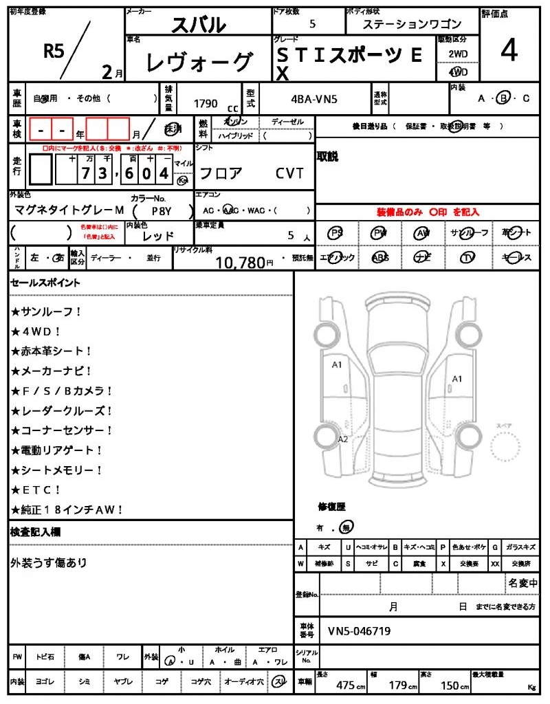 Meet the 2023 Subaru Levorg Wagon, a stylish and reliable ride that’s sure to turn heads with its sleek gray finish. Under the hood, you’ll find a 1790cc gasoline engine, paired with a 4WD system for added traction and control. As a used car from Japan, this Levorg is available for international buyers through AutoXGlobal, offering a unique opportunity to own a piece of Japanese automotive heritage. Whether you’re looking for a reliable daily driver or a fun weekend cruiser, the 2023 Subaru Levorg Wagon export from Japan is a great option to consider.