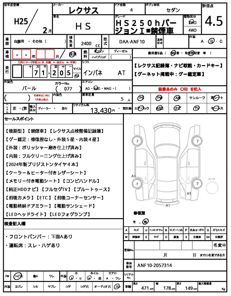 | LEXUS | HS | 2013 | 2400 cc | ||||||||||||||||