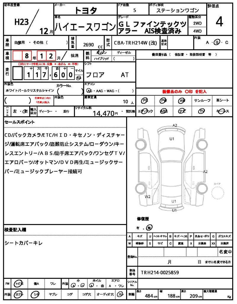 | TOYOTA | HIACE WAGON | 2011 | 2690 cc | ||||||||||||||||