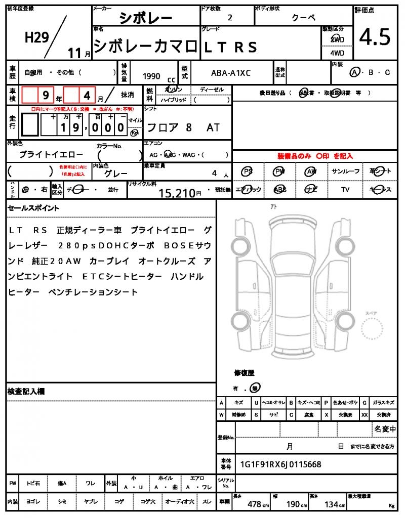 | CHEVROLET | CHEVROLET CAMARO | 2017 | 1990 cc | ||||||||||||||||