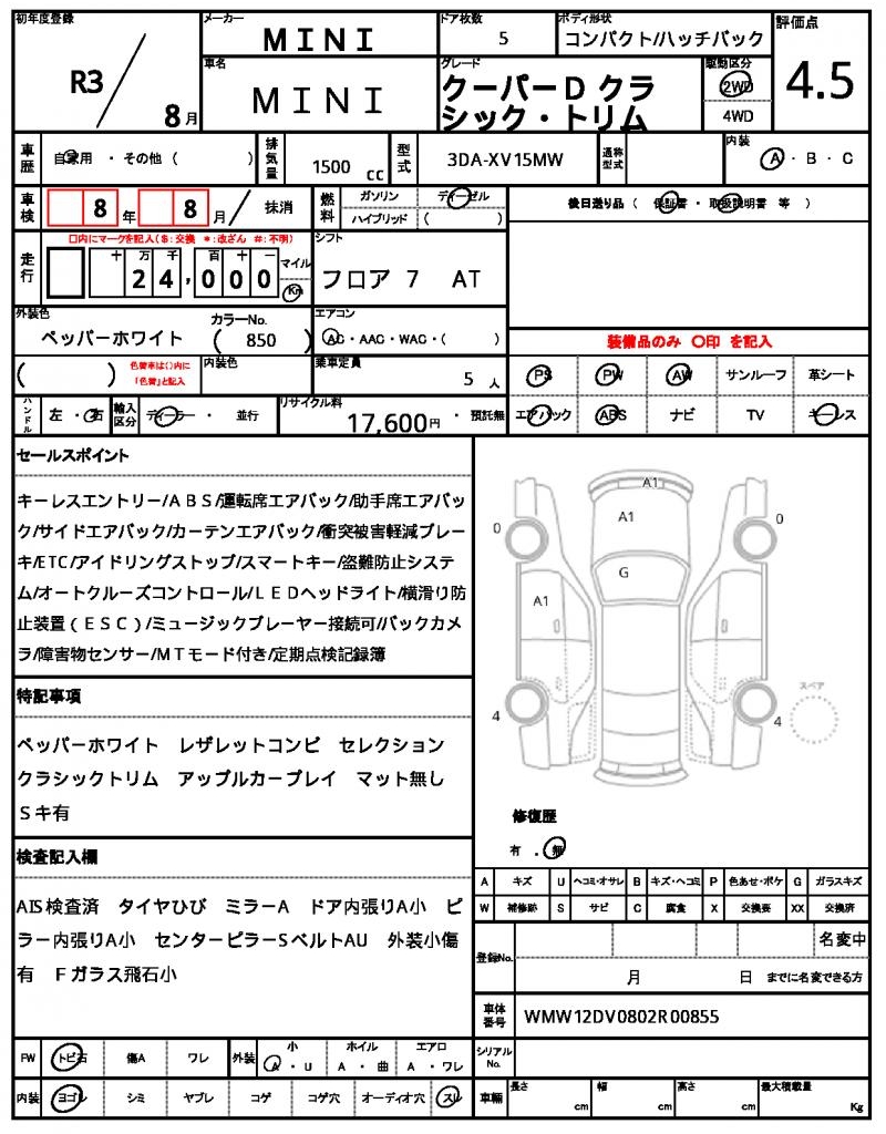 This 2021 MINI MINI Hatchback in sleek white is a head-turner on the road. Under the hood, you’ll find a 1500cc diesel engine, paired with a reliable 2WD system and features like power steering and power windows for added convenience. As a used car from Japan, this MINI MINI is available exclusively through AutoXGlobal for international buyers looking for a unique ride. If you’re ready to export from Japan, this 2021 MINI MINI Hatchback is a great choice for any car enthusiast.