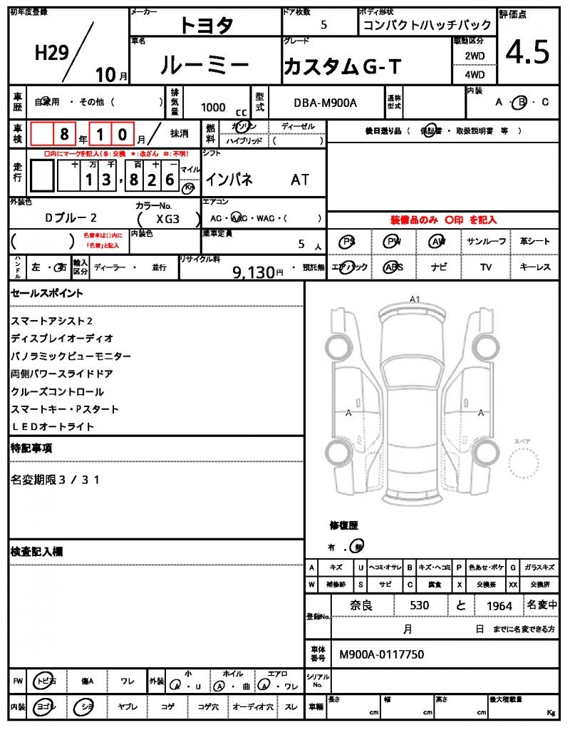 | TOYOTA | ROOMY | 2017 | 1000 cc | ||||||||||||||||