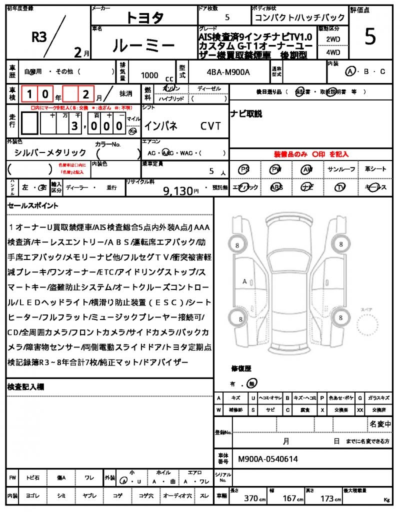 | TOYOTA | ROOMY | 2021 | 1000 cc | ||||||||||||||||