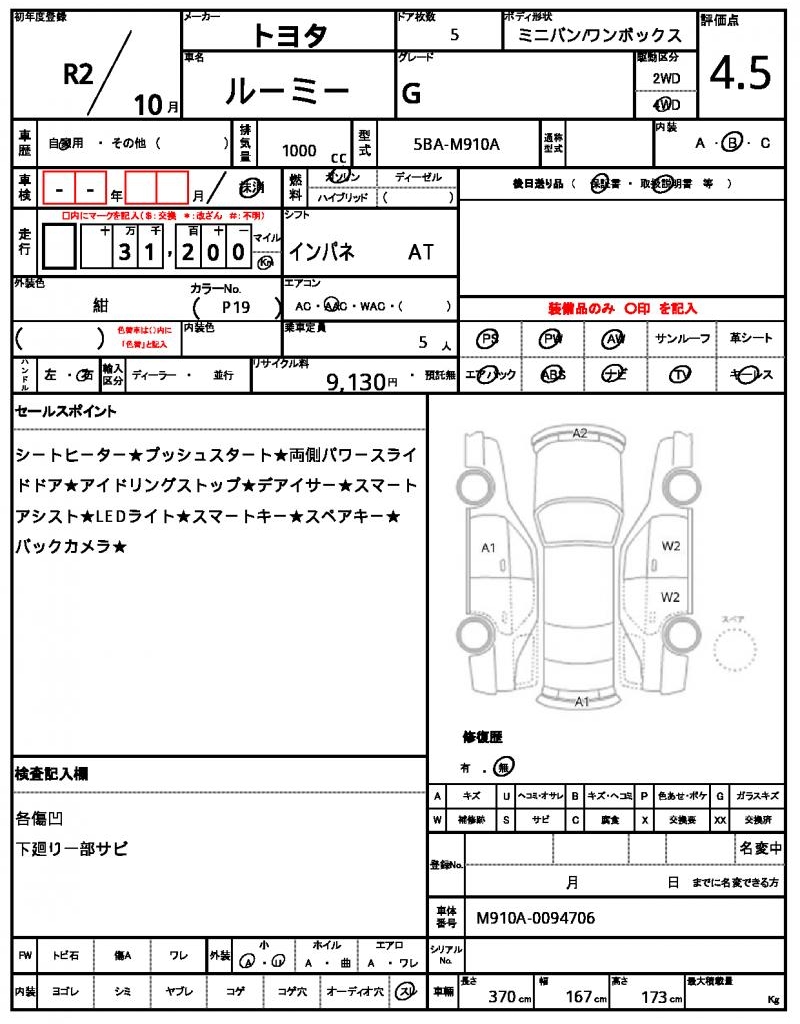 | TOYOTA | ROOMY | 2020 | 1000 cc | ||||||||||||||||