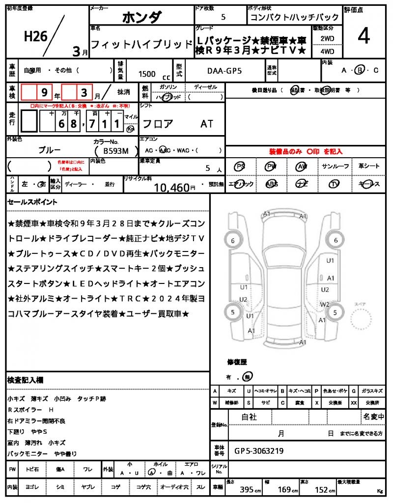 | HONDA | FIT HYBRID | 2014 | 1500 cc | ||||||||||||||||