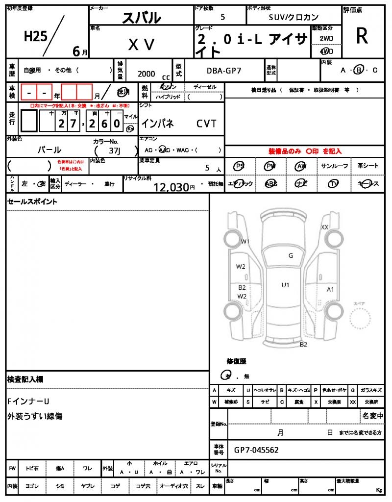 | SUBARU | XV | 2013 | 2000 cc | ||||||||||||||||