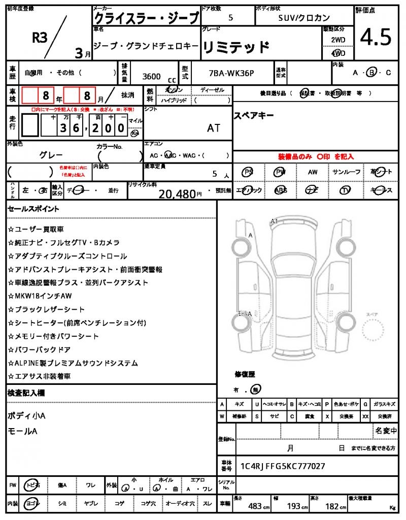 CHRYSLER JEEPJEEP GRAND CHEROKEE20213600 cc