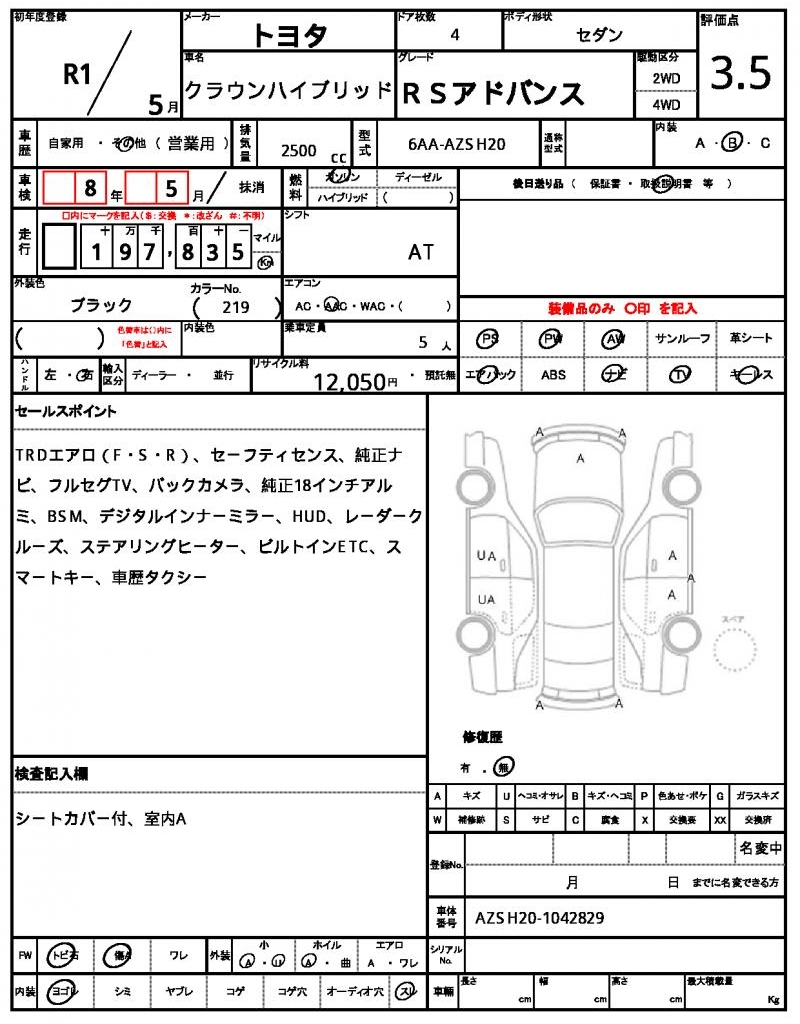 | TOYOTA | CROWN HYBRID | 2019 | 2500 cc | ||||||||||||||||