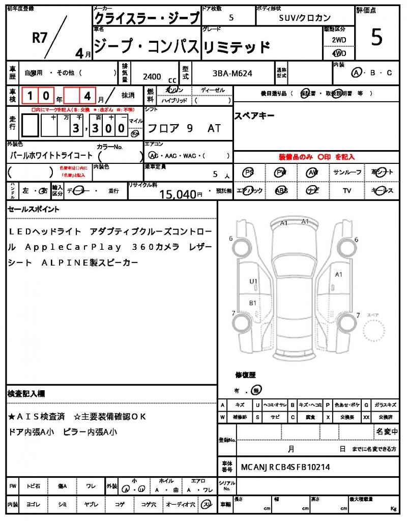 Meet the 2025 CHRYSLER JEEP COMPASS, a sleek white SUV that’s ready to hit the open road. Under the hood, you’ll find a reliable 2400 cc engine that runs smoothly on gasoline, and with its 4WD system, you’ll have the traction you need to take on any terrain. As a used car from Japan, this COMPASS has been carefully maintained and is now available through AutoXGlobal for international buyers. Whether you’re looking for a reliable daily driver or a rugged adventure companion, this Japanese used car export is the perfect choice – with features like power steering and power windows, you’ll be all set to take on whatever the road throws your way. The Chrysler Jeep Jeep Compass is available for export from Japan through AutoXGlobal.