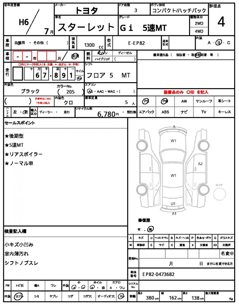 | TOYOTA | STARLET | 1994 | 1300 cc | ||||||||||||||||