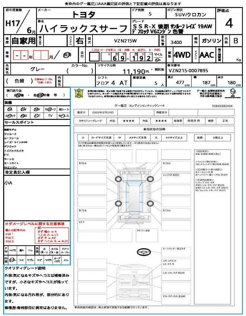 | TOYOTA | HILUX SURF | 2005 | 3400 cc | ||||||||||||||||