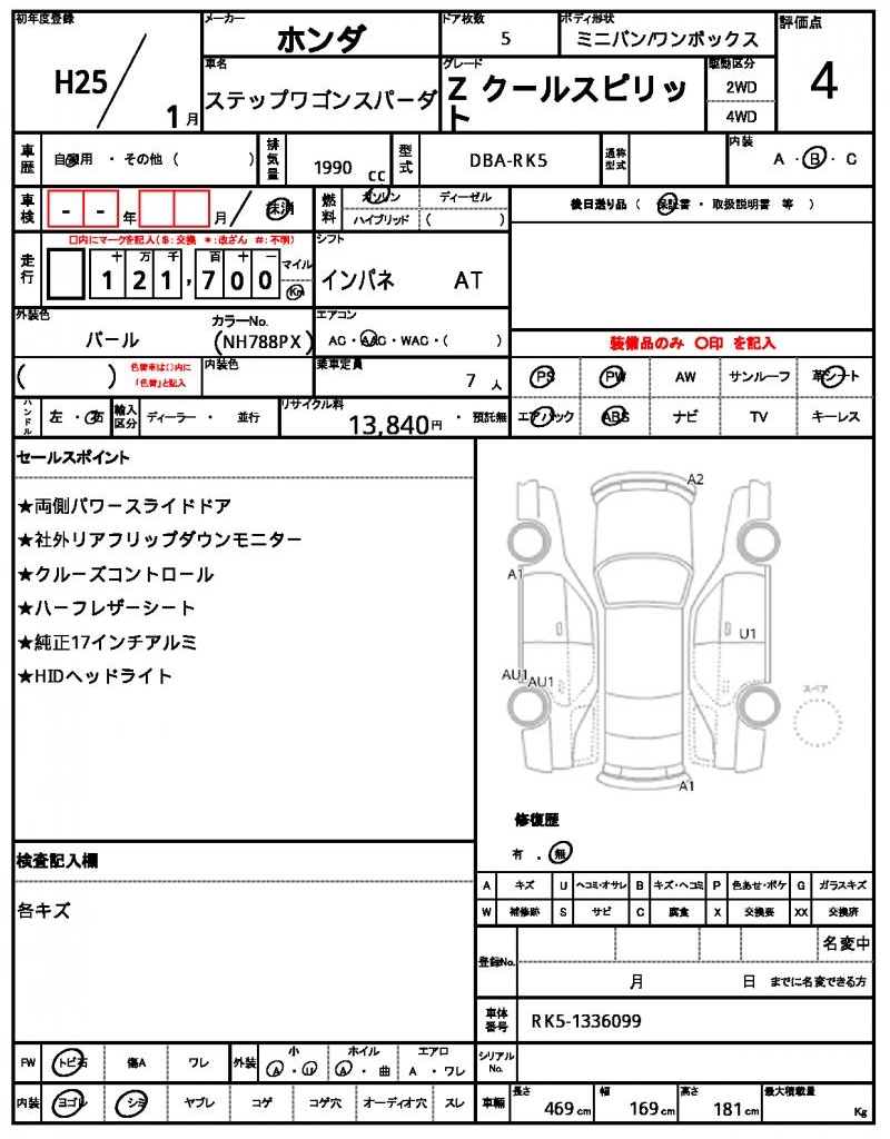 | HONDA | STEPWAGON SPADA | 2013 | 1990 cc | ||||||||||||||||
