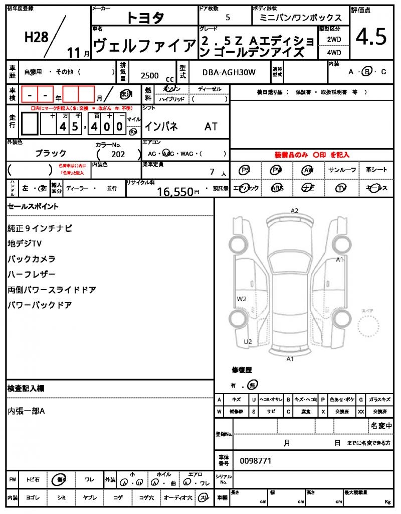 | TOYOTA | VELLFIRE | 2016 | 2500 cc | ||||||||||||||||