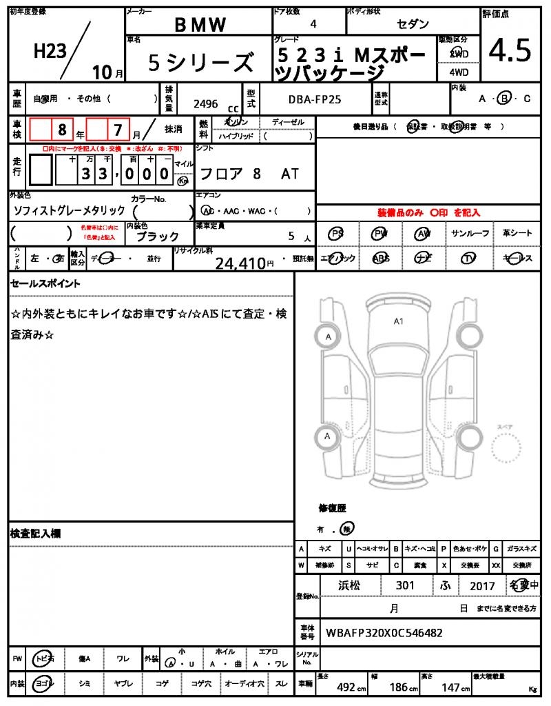 | BMW | 5 SERIES | 2011 | 2496 cc | ||||||||||||||||