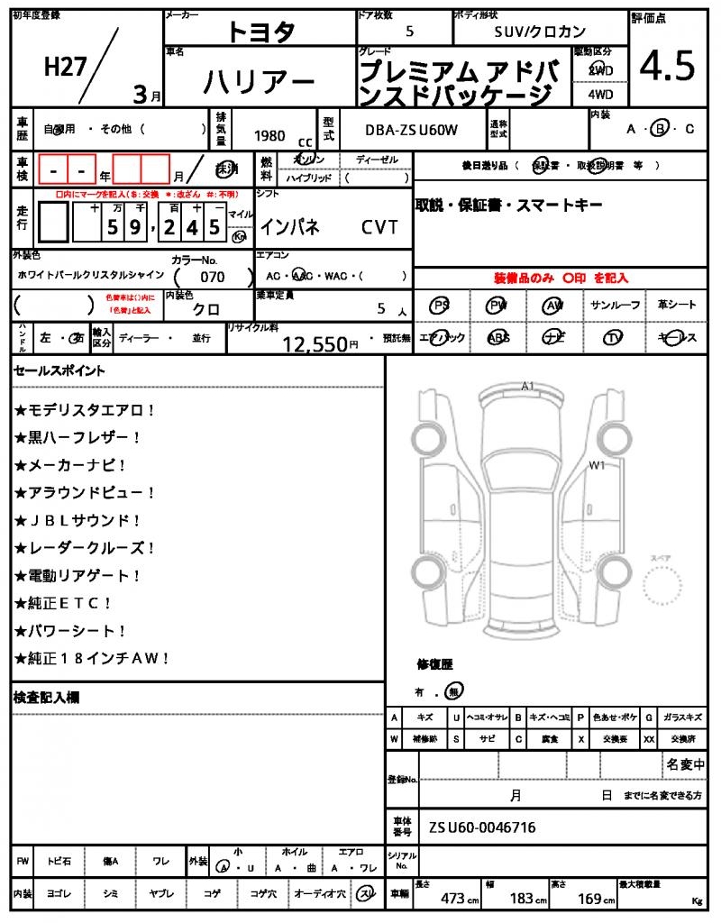 | TOYOTA | HARRIER | 2015 | 1980 cc | ||||||||||||||||