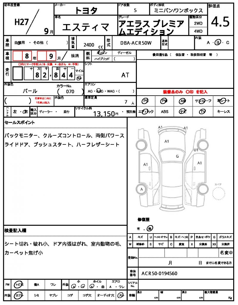 | TOYOTA | ESTIMA | 2015 | 2400 cc | ||||||||||||||||