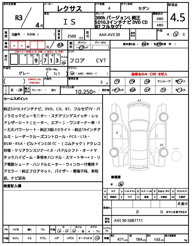 This 2021 LEXUS IS Sedan in gray is a sleek and powerful ride, boasting a 2500 cc hybrid engine that delivers excellent fuel efficiency. With power steering and power windows for added convenience, you’ll enjoy a comfortable driving experience. This vehicle is a used car export from Japan, available exclusively through AutoXGlobal for international buyers. Experience the reliability and luxury of the LEXUS IS, now exportable from Japan through our platform.