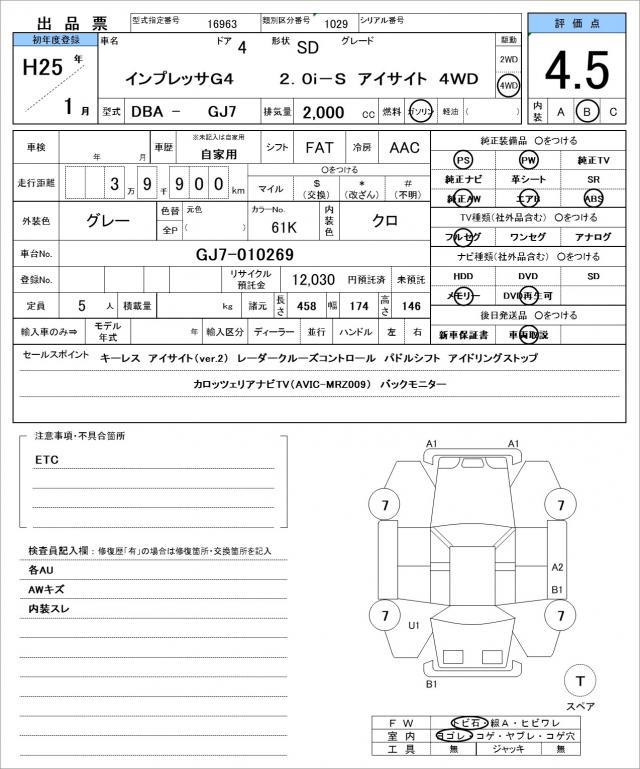 | SUBARU | IMPREZA G4 | 2013 | 2000 cc | ||||||||||||||||