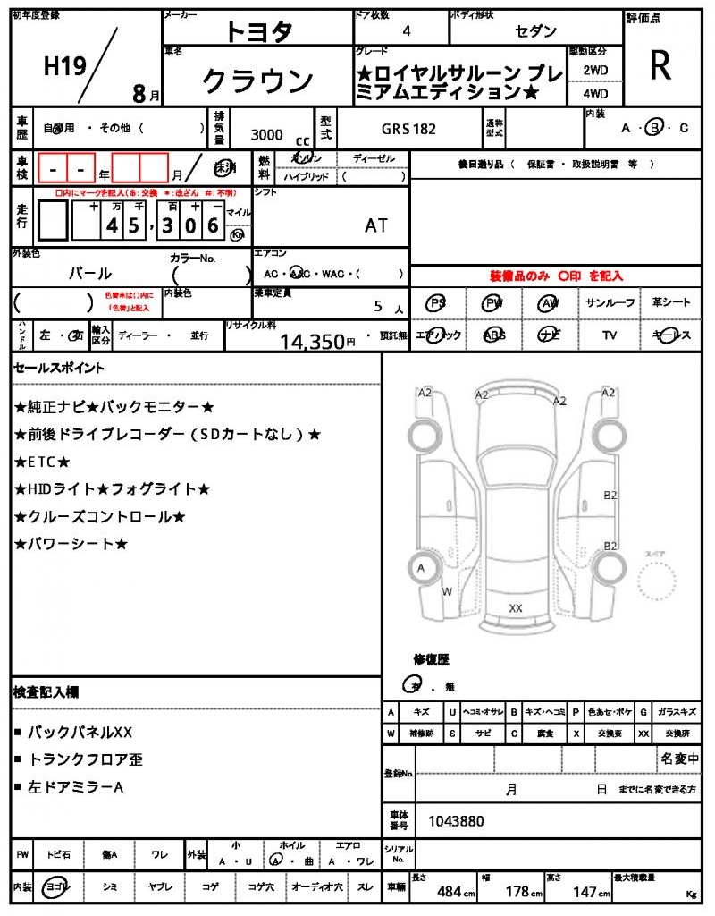 | TOYOTA | CROWN | 2007 | 3000 cc | ||||||||||||||||