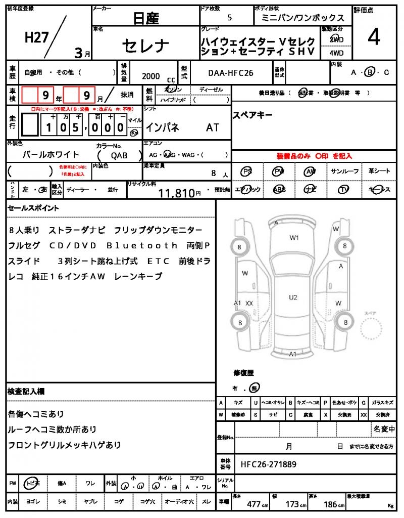 | NISSAN | SERENA | 2015 | 2000 cc | ||||||||||||||||