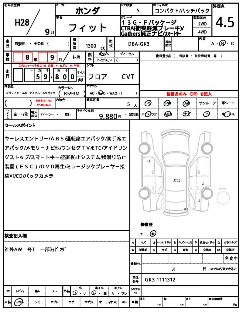 | HONDA | FIT | 2016 | 1300 cc | ||||||||||||||||