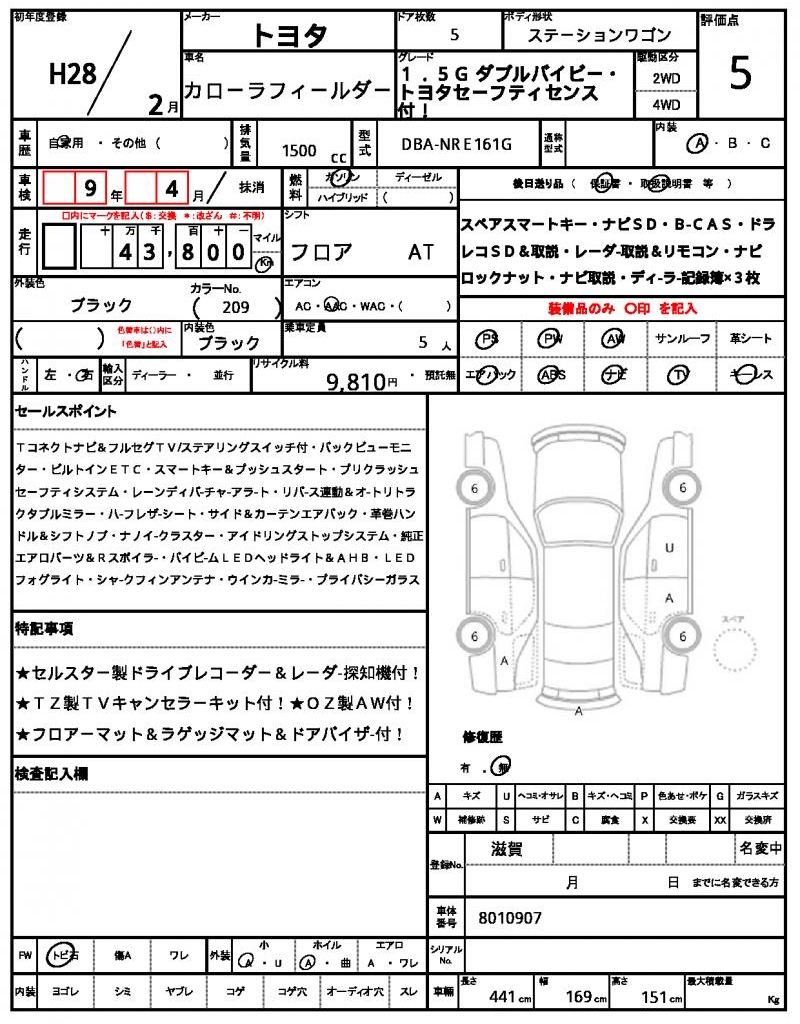 | TOYOTA | COROLLA FIELDER | 2016 | 1500 cc | ||||||||||||||||