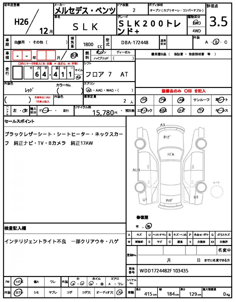 | MERCEDES BENZ | SLK | 2014 | 1800 cc | ||||||||||||||||