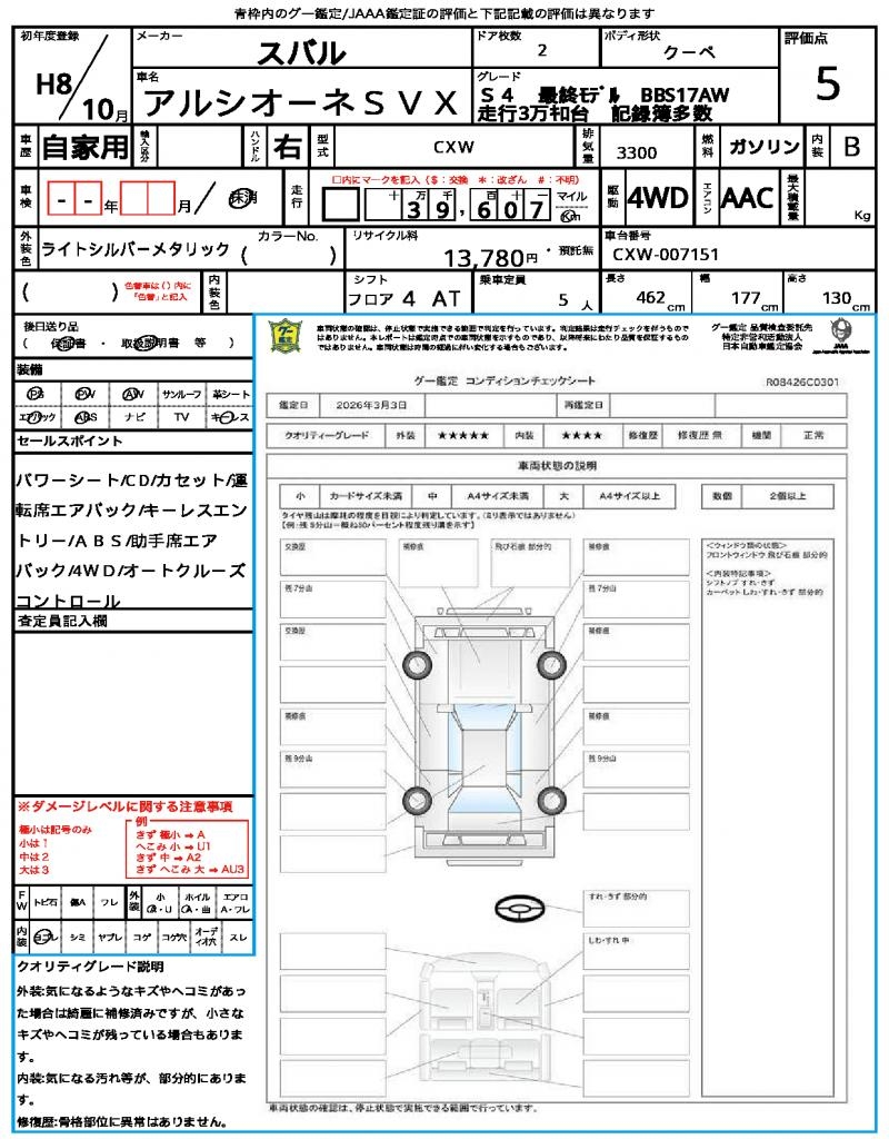 SUBARUALCYONE SVX19963300 cc