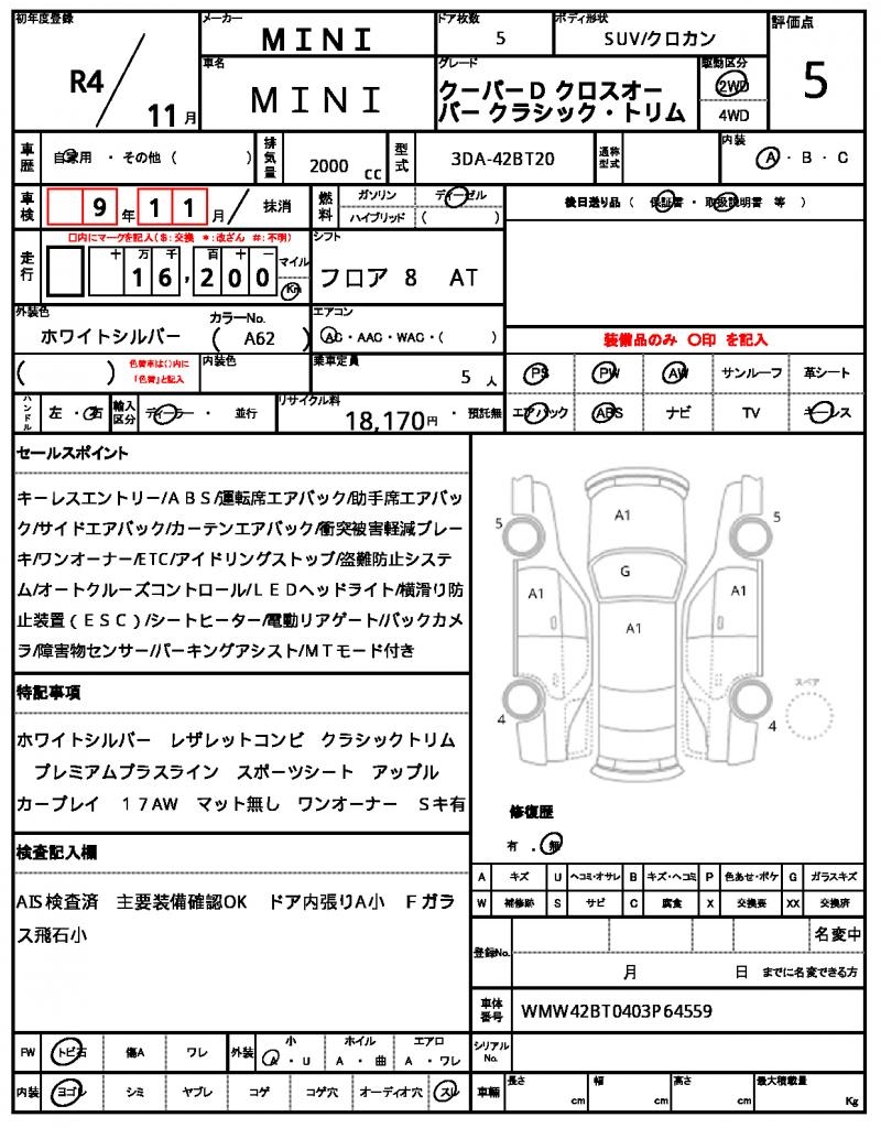 Meet the 2022 MINI SUV, a stylish and reliable ride wrapped in a sleek silver coat. Under the hood, you’ll find a 2000cc diesel engine, paired with a 2WD drive system and powered by the convenience of power steering. This Japanese-used MINI SUV is now available for international buyers through AutoXGlobal, offering a hassle-free export process. Whether you’re looking for a comfortable commuter or a fun adventure partner, the 2022 MINI SUV export from Japan is the perfect choice. The Mini Mini is available for export from Japan through AutoXGlobal.