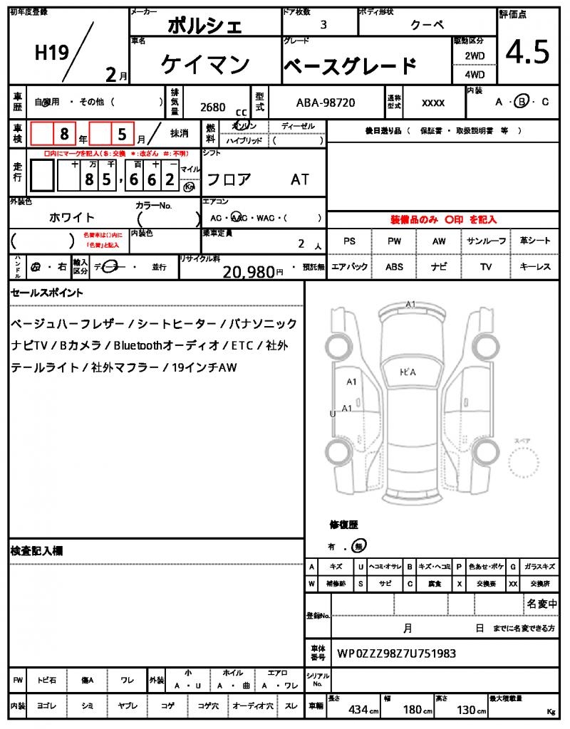 This stunning white 2007 Porsche Cayman Coupe is a head-turner, boasting a powerful 2680cc gasoline engine and a smooth 2WD drive system. With no accidents in its history and air conditioning for a comfortable ride, this Cayman is ready for its next adventure. As a used car from Japan, it’s available for international buyers through AutoXGlobal. Experience the thrill of driving a Japanese used car export, the 2007 Porsche Cayman, and discover the joy of owning a piece of German engineering.