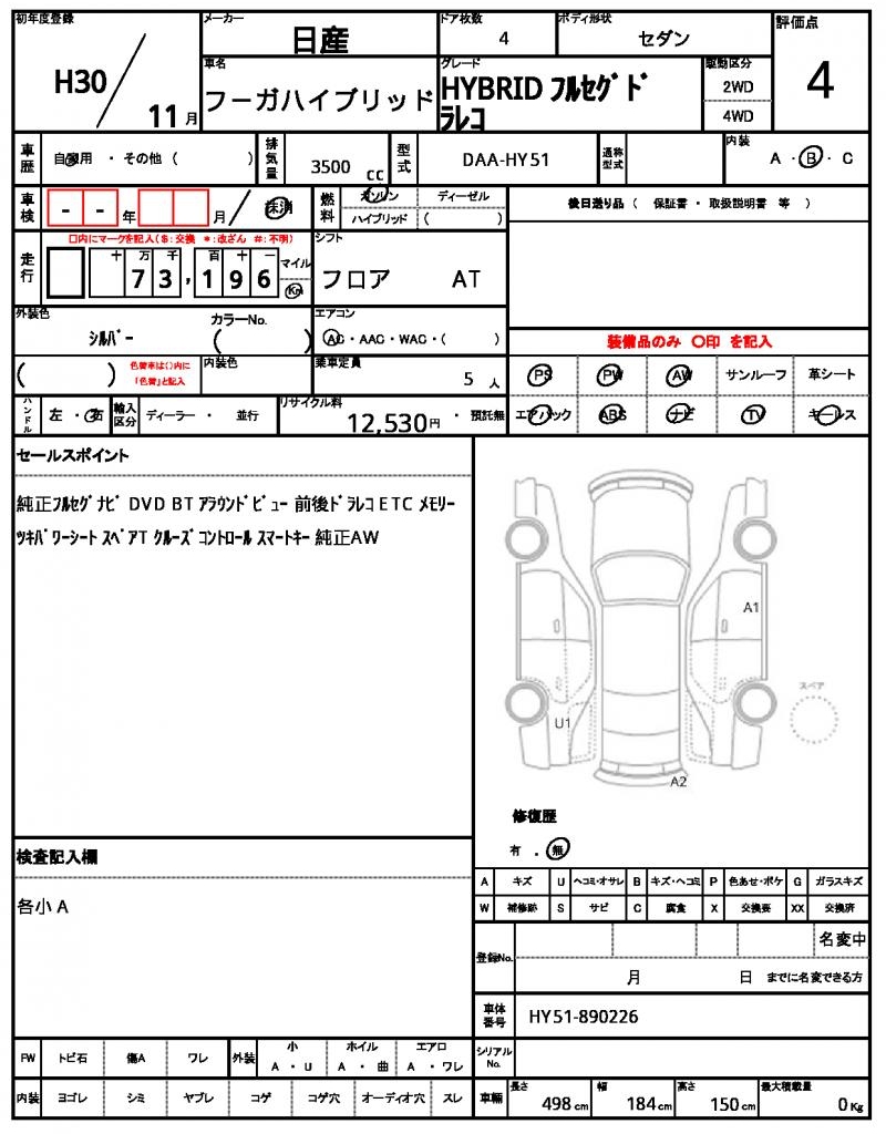 NISSANFUGA HYBRID20183500 cc