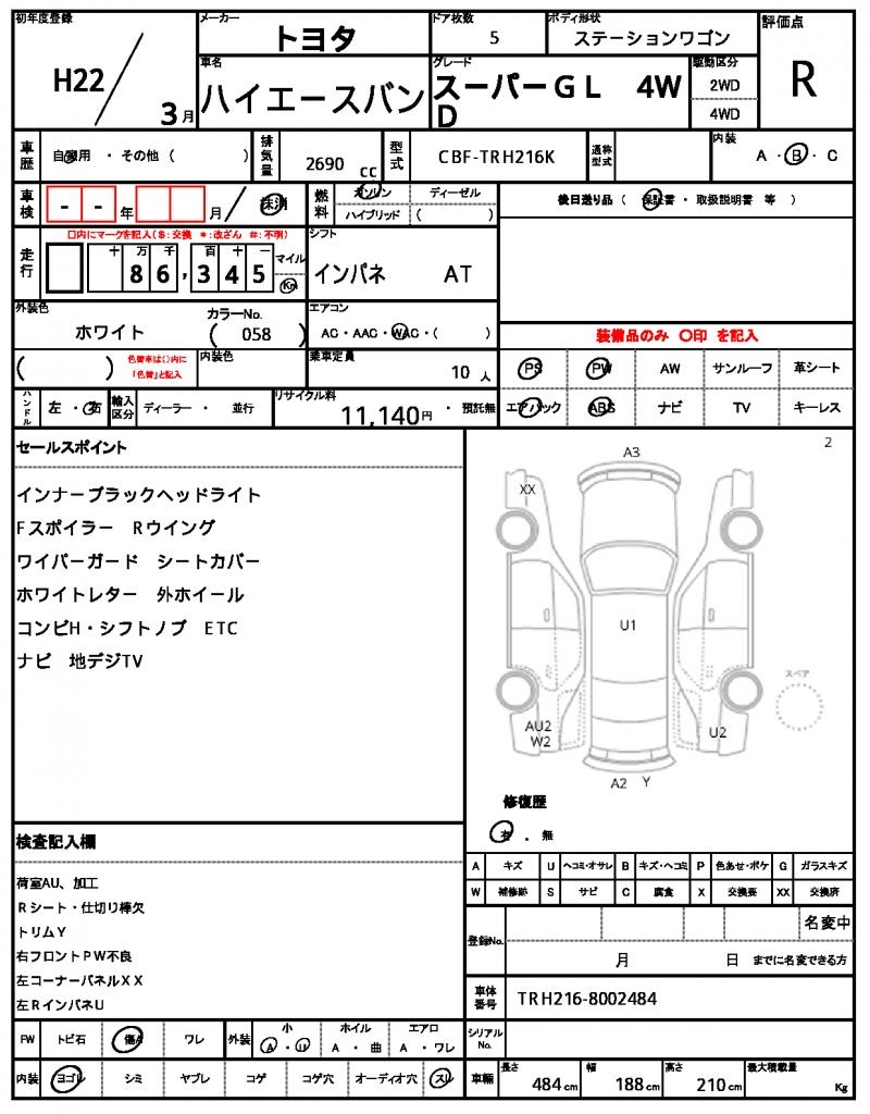| TOYOTA | HIACE VAN | 2010 | 2690 cc | ||||||||||||||||