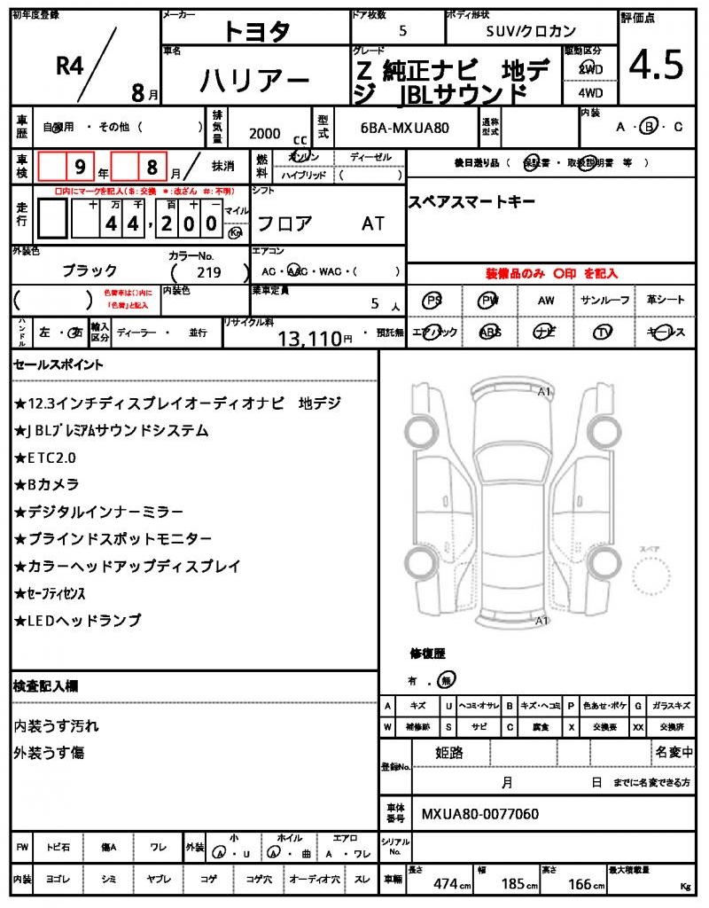 | TOYOTA | HARRIER | 2022 | 2000 cc | ||||||||||||||||