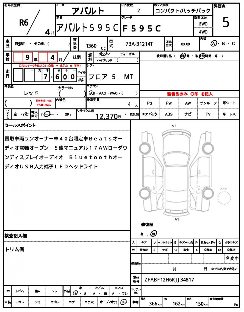 ABARTHABARTH 595C20241360 cc