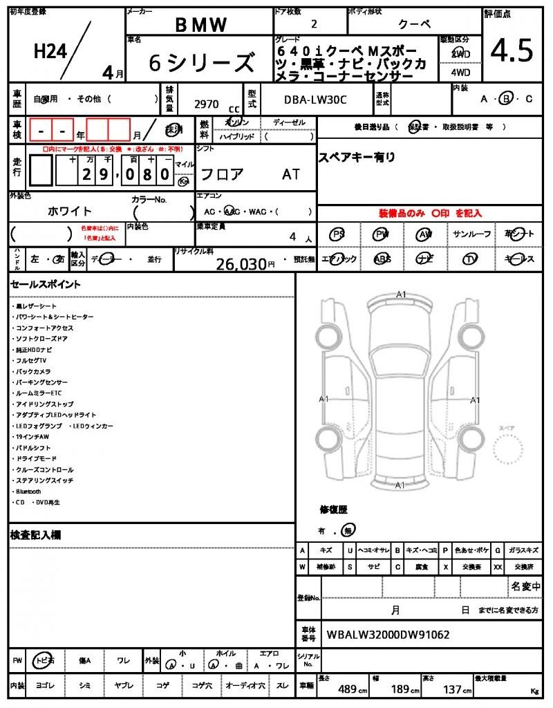 The 2012 BMW 6 SERIES Coupe is a sleek and powerful ride, finished in a crisp white that’s sure to turn heads on the road. Under the hood, you’ll find a 2970cc engine running on gasoline, paired with 2WD and a range of features including power steering and power windows. This beautiful BMW is a used car from Japan, available for international buyers through AutoXGlobal. If you’re looking for a high-performance Japanese used car export, look no further than this exceptional 2012 BMW 6 SERIES Coupe.