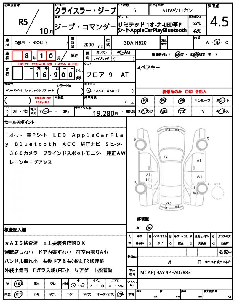 The 2023 Chrysler Jeep Commander, a rugged gray SUV, is packed with features to take your adventures to the next level. Under the hood, you’ll find a reliable 2000cc diesel engine, paired with a 4WD system and power steering for smooth handling. As a used car from Japan, this Commander is available for international buyers through AutoXGlobal. Whether you’re looking for a reliable daily driver or a capable off-road companion, the 2023 Jeep Commander export from Japan is a great option to consider. The Chrysler Jeep Jeep Commander is available for export from Japan through AutoXGlobal.