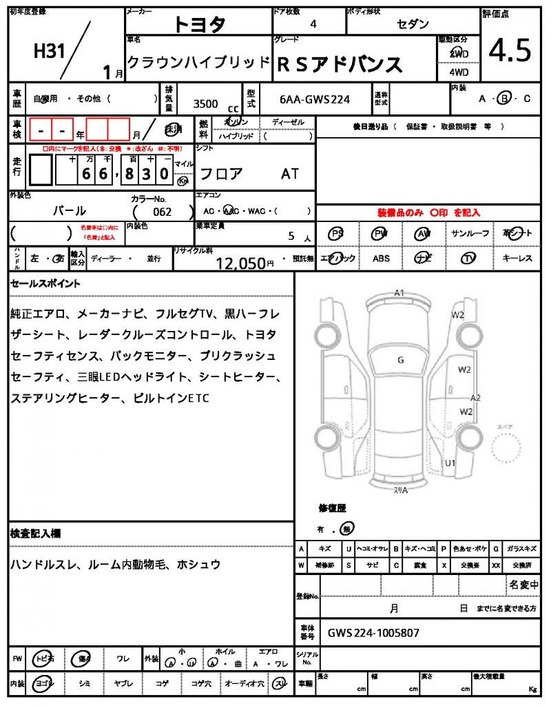 TOYOTACROWN HYBRID20193500 cc