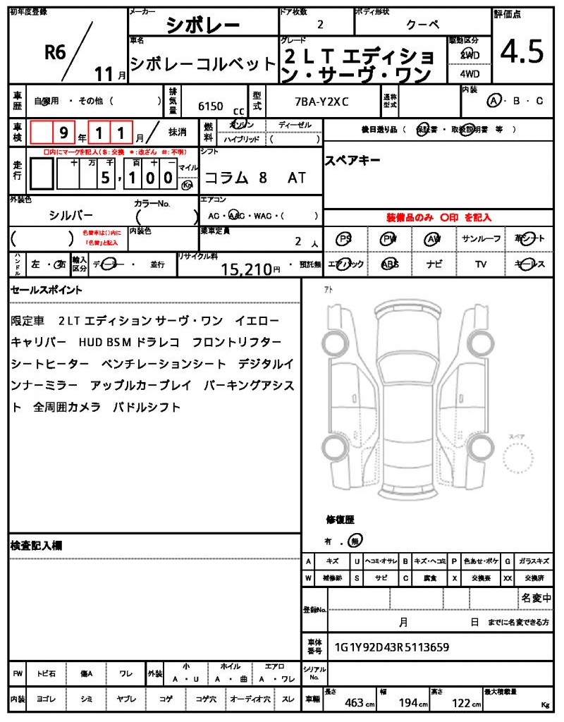 The 2024 Chevrolet Corvette is a sleek silver coupe that’s sure to turn heads on the road. Under the hood, you’ll find a powerful 6150cc engine that’s paired with gasoline and a 2WD drive system, making it a thrill to drive. As a used car export from Japan, this Corvette has been carefully prepared for international buyers through AutoXGlobal. If you’re looking for a unique ride that’s full of excitement, look no further than this Japanese used car export, a 2024 Chevrolet Corvette. The Chevrolet Chevrolet Corvette is available for export from Japan through AutoXGlobal.