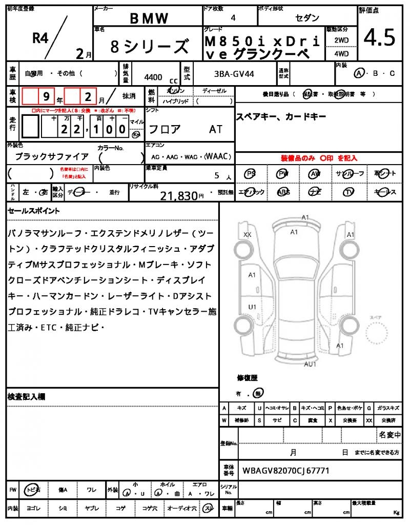 This sleek 2022 BMW 8 SERIES Sedan is dressed in a sharp black finish, a perfect combination of style and sophistication. Under the hood, you’ll find a powerful 4400 cc engine that runs on gasoline and features power steering for a smooth ride. As a used car from Japan, this 8 SERIES is available for international buyers through AutoXGlobal. Whether you’re looking for a reliable daily driver or a luxurious addition to your fleet, this Japanese used car export from Japan won’t disappoint.