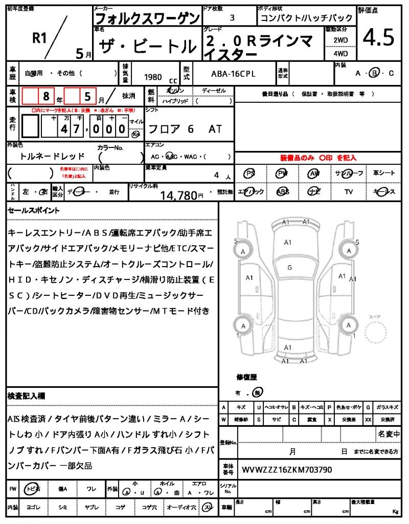 VOLKSWAGENTHE BEETLE20191980 cc