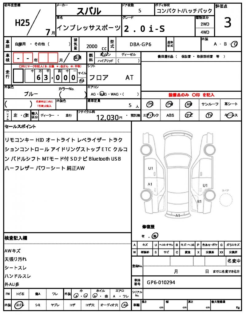 SUBARUIMPREZA SPORTS20132000 cc