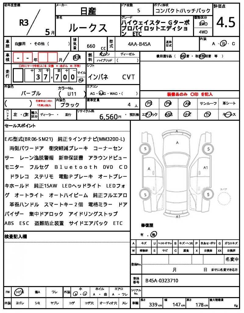 Meet the 2021 NISSAN ROOX, a vibrant purple hatchback that turns heads on the road. Under the hood, you’ll find a reliable 660 cc gasoline engine paired with a 2WD drive system, making it perfect for city streets and highways alike. With features like power steering and power windows, this little car is a delight to drive. Available through AutoXGlobal, this Japanese used car export is ready to find a new home with an international buyer.