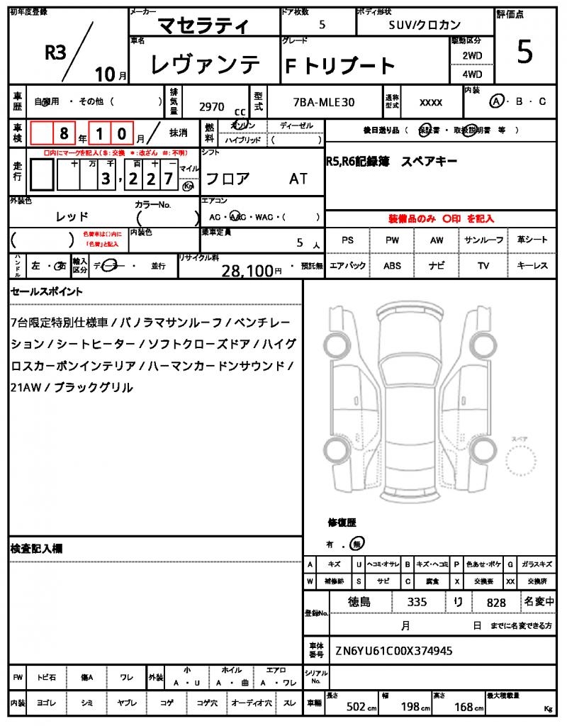 Meet this stunning 2021 Maserati Levante, a bold red SUV that’s sure to turn heads on the road. Under the hood, you’ll find a powerful 2.9-liter gasoline engine, paired with a smooth 2WD drivetrain and air conditioning for a comfortable ride. As a used car from Japan, this Maserati Levante is available for international buyers through AutoXGlobal. With its comprehensive maintenance log and record book included, and a history free of accidents, this Japanese used car export is a great opportunity to own a piece of luxury at an affordable price.