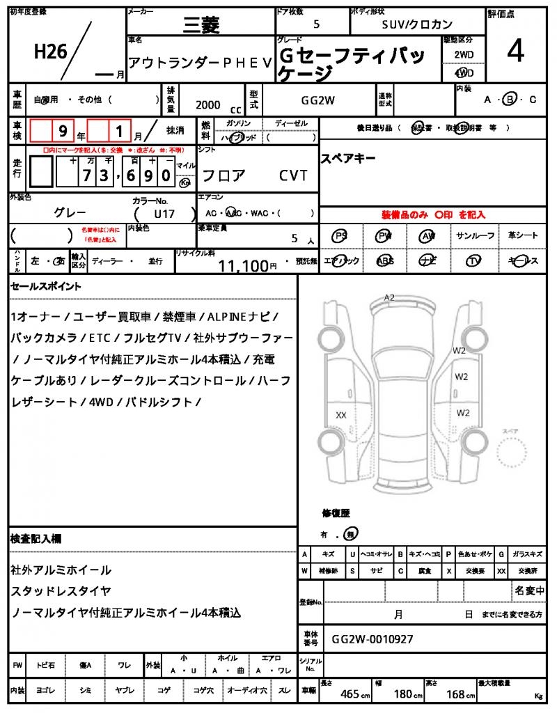 MITSUBISHIOUTLANDER PHEV20142000 cc