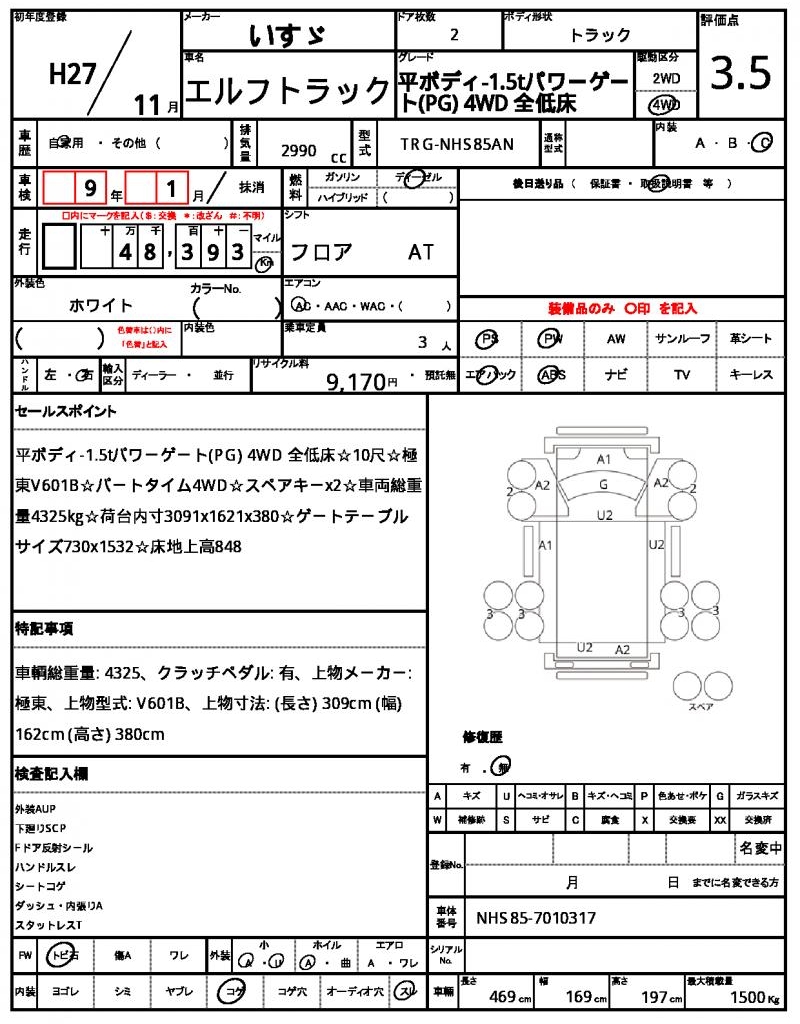 This 2015 ISUZU ELF TRUCK is a reliable and versatile white truck, perfect for hauling heavy loads. Under the hood, you’ll find a powerful 2990cc diesel engine with 4WD capability, making it suitable for off-road terrain. As a used car from Japan, this vehicle is available for international buyers through AutoXGlobal, offering a convenient and streamlined export process. For those in the market for a rugged and capable truck, the ISUZU ELF TRUCK export from Japan is an excellent choice, featuring power steering and a driver’s airbag for added safety and comfort.