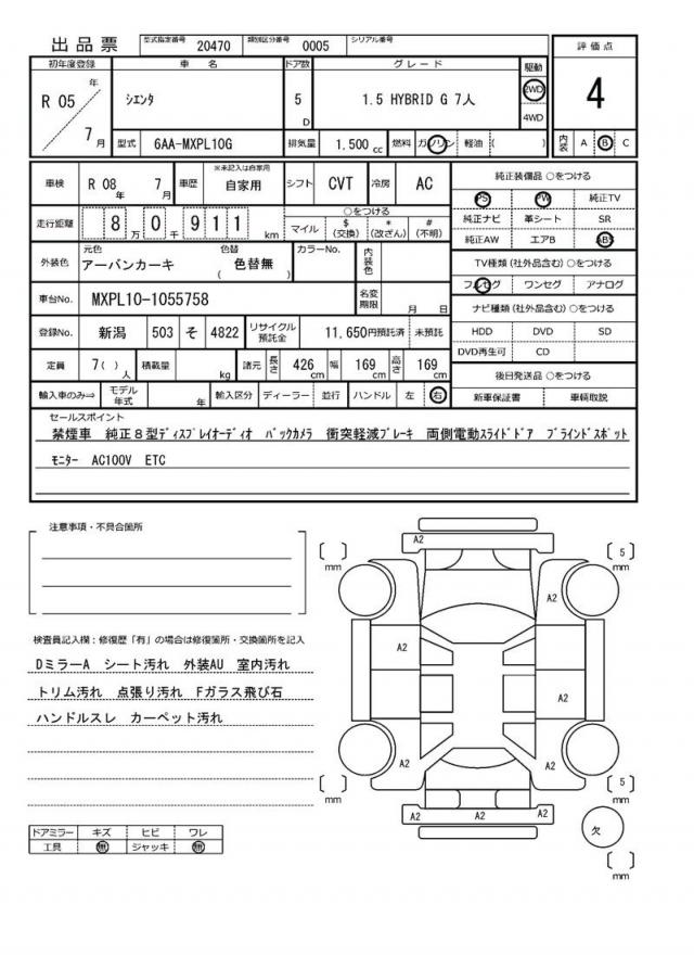 This 2023 TOYOTA SIENTA minivan stands out with its vibrant green exterior. Under the hood, you’ll find a 1500cc hybrid engine paired with a 2WD drive system, making it a fuel-efficient and eco-friendly ride. As a used car from Japan, this SIENTA is available for international buyers through AutoXGlobal, offering a hassle-free export process. The TOYOTA SIENTA export from Japan features power steering and power windows, making it a practical and convenient choice for families or commuters.