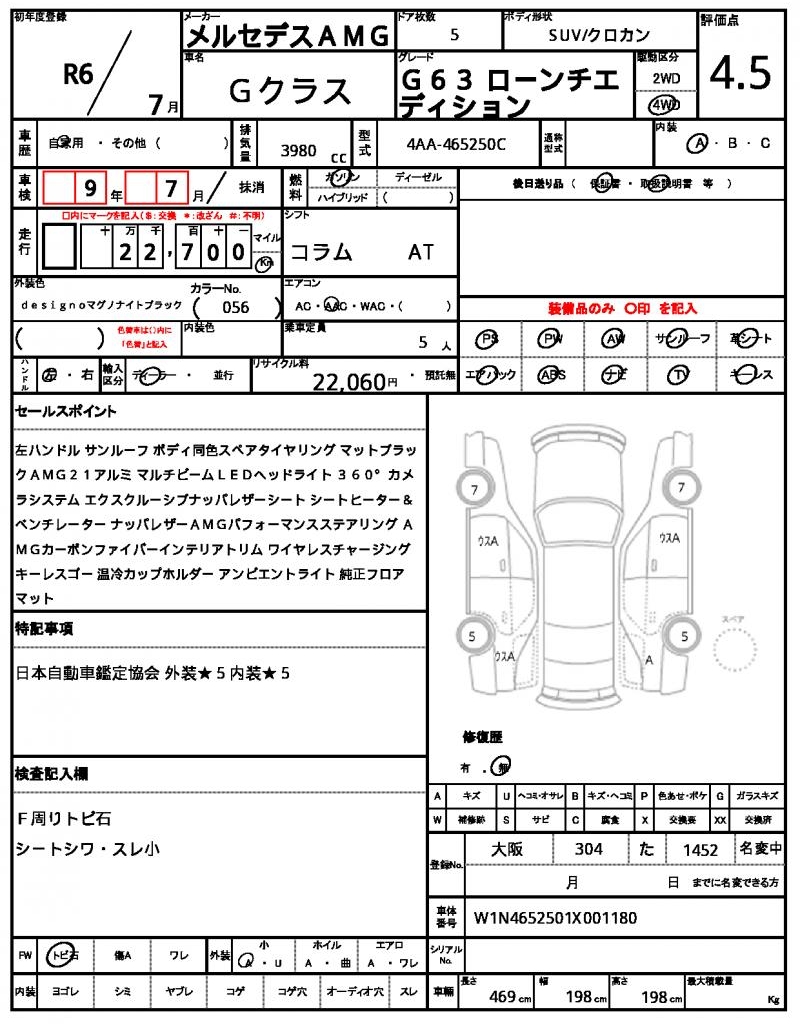 Meet the 2024 Mercedes AMG G-Class, a sleek black SUV that packs a punch. Under the hood lies a powerful 3980cc engine that runs on gasoline and sends power to all four wheels, making it a beast on any terrain. As a used car from Japan, it’s now available to international buyers through AutoXGlobal. This Mercedes AMG G-Class is a Japanese used car export that’s not to be missed, featuring power steering and power windows to make driving a breeze.