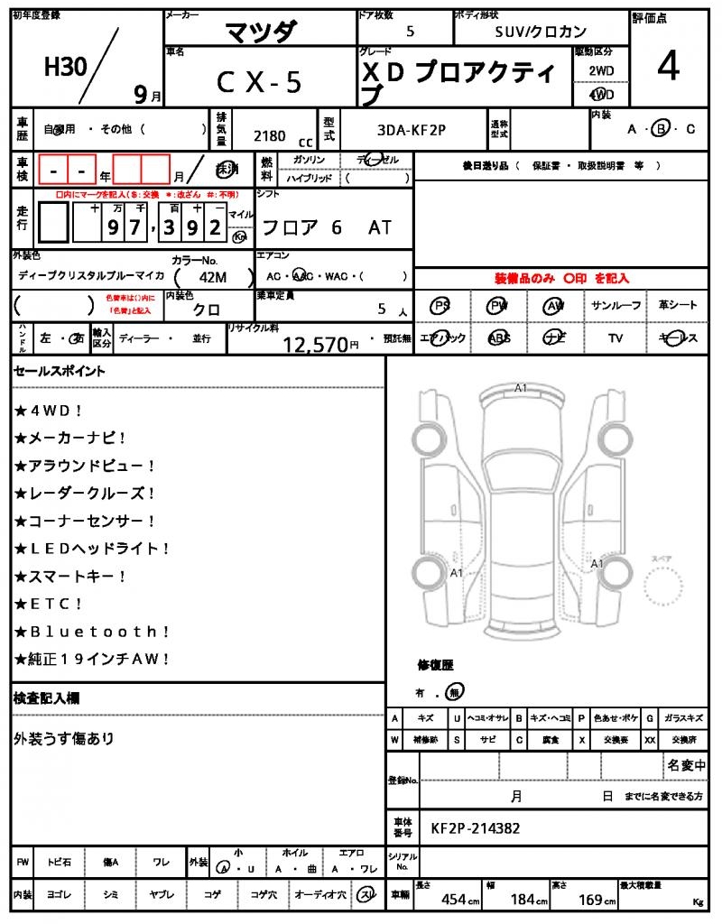 Meet the 2018 MAZDA CX-5, a sleek blue SUV that’s sure to turn heads on the road. Under the hood, you’ll find a powerful 2180cc diesel engine, paired with a 4WD system and features like power steering and aluminum wheels. This gem is a used car from Japan, available exclusively through AutoXGlobal for international buyers. If you’re looking for a reliable and feature-packed Japanese used car export, the 2018 MAZDA CX-5 is a top choice.