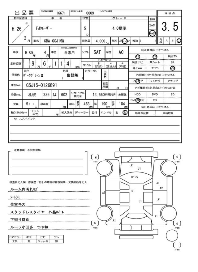 Meet the 2014 Toyota FJ CRUISER, a rugged and reliable green SUV with a commanding presence on the road. Under the hood, you’ll find a powerful 4000 cc gasoline engine, paired with a 4WD system for unstoppable traction and a pair of features that’ll make your daily drive a breeze: power steering and power windows. As a used car from Japan, this Toyota FJ CRUISER is available for international buyers through AutoXGlobal. Don’t miss out on this opportunity to export a quality Japanese used car – this 2014 Toyota FJ CRUISER is ready to hit the roads of your home country.