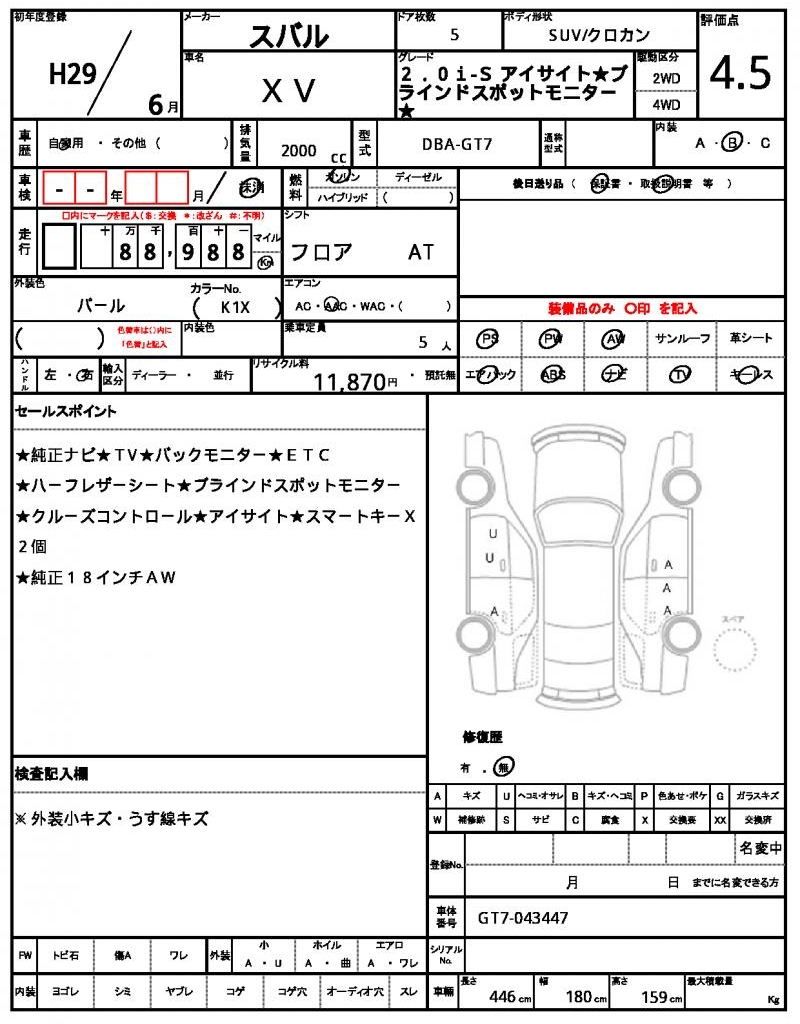 This stunning 2017 Subaru XV SUV is a head-turner in its Pearl finish. Under the hood, you’ll find a 2000 cc gasoline engine, paired with a 2WD drivetrain and featuring power steering for a smooth ride. As a used car from Japan, this Subaru XV is now available through AutoXGlobal for international buyers. With its aluminum wheels and power windows, this Japanese used car export is a great find for anyone looking for a reliable and feature-packed SUV.